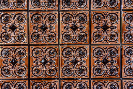 Old vintage ceramic tiles for decoration stoves, wall and floor. Background, texture, seamless pattern