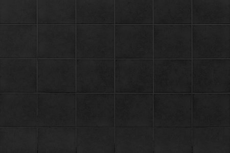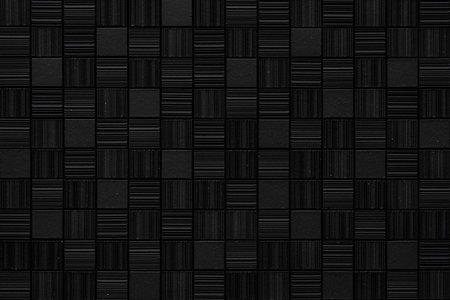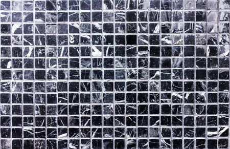 Dark black ceramic wall and floor tiles mosaic background in bathroom and kitchen. Design pattern geometric with grid wallpaper texture decoration pool. Simple seamless abstract surface grunge.