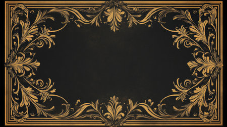This stock image features an elegant decorative border design, showcasing intricate gold floral patterns on a dark background, perfect for stylish visual projects.
