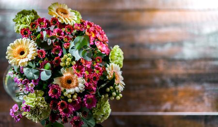 Vibrant and colorful mixed flower bouquet in a stunning still life composition for decoration
