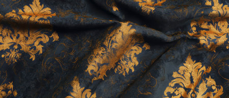 Elegant damask pattern with subtle texture in rich gold on dark background