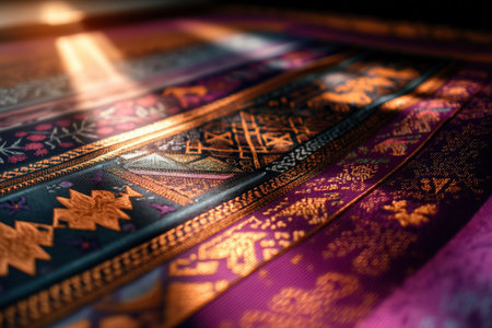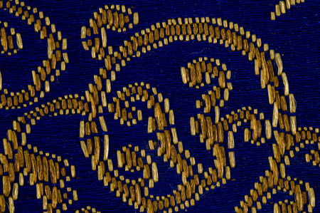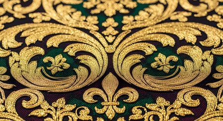close-up of heavy brocade fabric with intricate patterns, created with generative ai