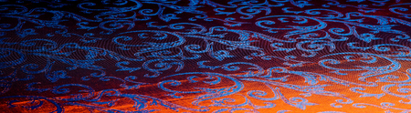 Blur. A close-up shot of delicate black fabric with an intricate orange floral pattern. The texture of the material adds depth, with subtle folds enhancing the interplay between shadow and light.