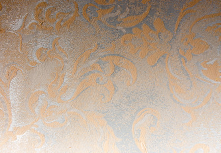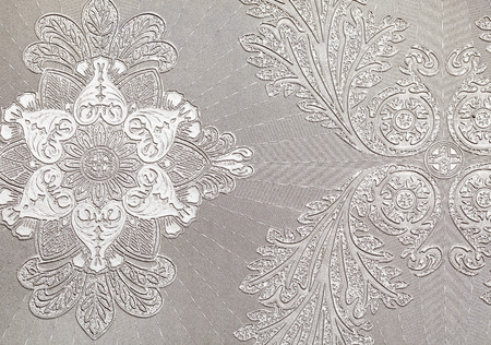 Texture, background, pattern. silk cloth Royal monogram. Moses Velvet with a design of gold foil lilies. Soft, light velvet depicts a playfully twirled design in decadent gold.