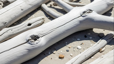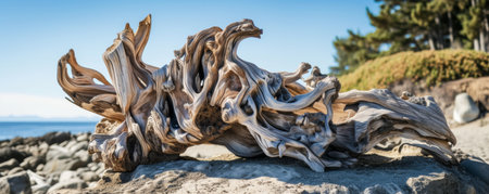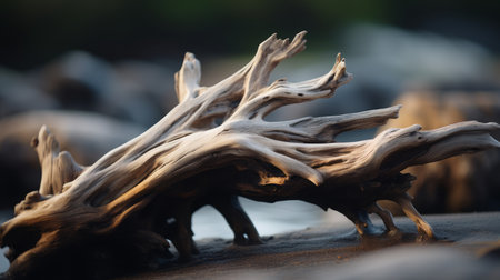 AI Generated. Unique Long Driftwood Weathered by Nature