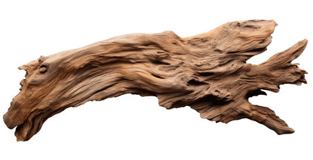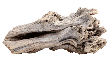 Weathered driftwood on transparent background, natural texture study. Organic art and nature concept