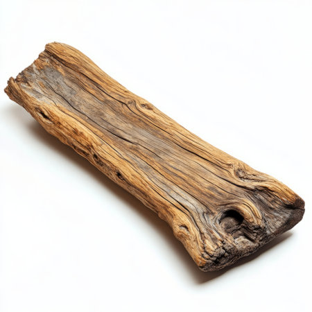 Close-up of weathered driftwood pieces against a clean white backdrop, emphasizing texture and natural elements.