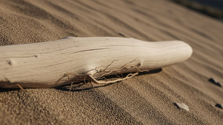 Serenity in Nature: Capturing a Closeup of a Wooden Stick Amidst Sandy Surroundings — AR 3:2