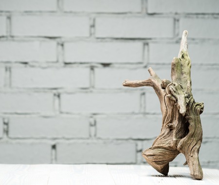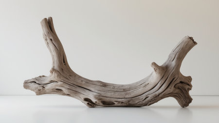 Intricately shaped driftwood piece against a neutral background, ideal for minimalist designs