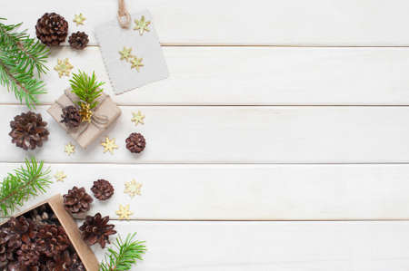 White wooden background with Christmas or New Year decoration