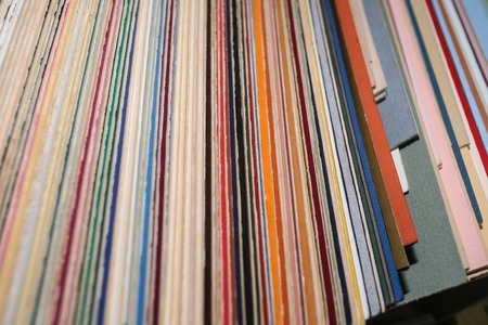 Colorful abstract background of curved sheets of paper stacked in a row