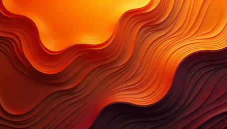 Abstract waves of orange, red, and gray layers