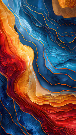 Abstract layered paint effect with dynamic color waves texture