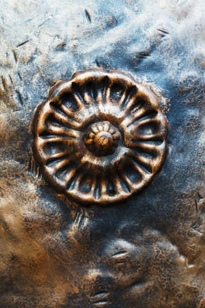background of beautiful patina ornaments over rust blue