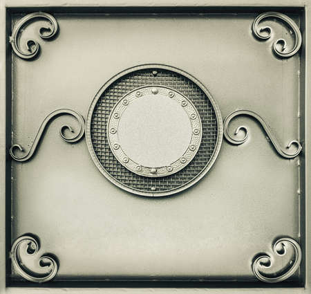 a Photo of a manhole cover made of steel In modern vintage style