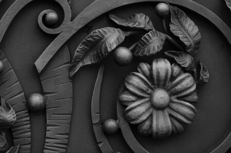 Decorative forged leaves on a metal gate in dark colors