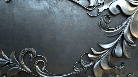 AI Generated. Dark Metal Floral Design Background Texture