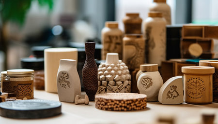 Modern pottery collection showcases creative variation in home decoration design generated by artificial intelligence