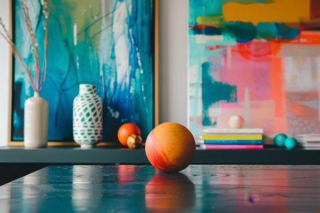 A stunning display of rustic pottery and colorful artifacts on a wooden shelf, representing rich cultural heritage and exquisite craftsmanship in art.