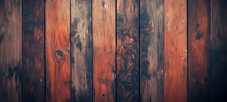 A dark brown wooden paneled rustic surface with textured grunge for elegant design elements.
