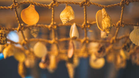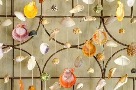 handcrafted, hanging curtains made of shells for sell as souvenir at Nipah Bay Pangkor Island, Malaysia
