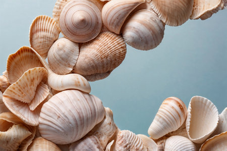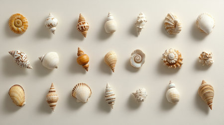 A beautiful arrangement of various seashells showcased on a soft light background, perfect for highlighting nature's artistry in decoration and design.