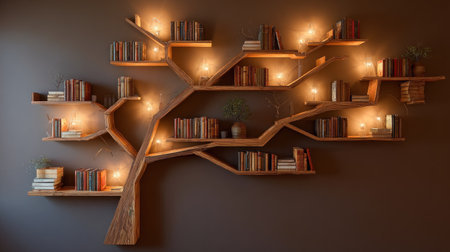 bookcase filled with books and plants for a cozy and serene atmosphere, created with generative ai