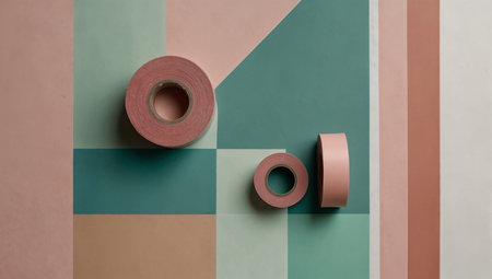 Geometric pastel patterns with decorative tapes on colorful background.