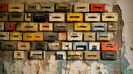 Audio cassettes for recorder 80s 90s 70s retro vintage old music time generation music tape wallpaper background style nostalgia song cover