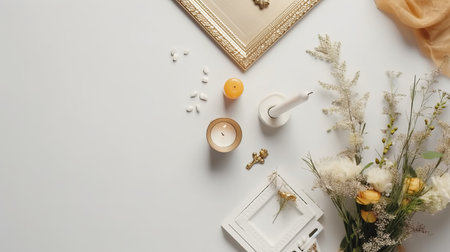 this mockup features a very detailed passover photo frame in the corners, set against a simple background with plenty of copy space. the flat lay design provides a great way to showcase your passover-themed photography or design work., ai generated
