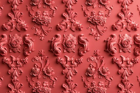 This image features a rich red floral pattern with embossed details on a textured surface, ideal for art projects, backgrounds, and decorative uses.