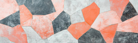 Unique coral and gray uneven patches are arranged in a mosaic design, perfect for enhancing modern interiors or outdoor areas. The combination offers a stylish appearance.