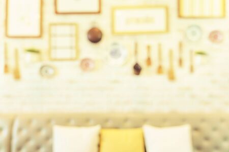 The interior of vintage living room with armchair and table hanging empty and natural photo frames on the wall. Generative AI AIG27.