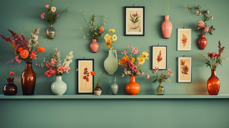 the decorative wall vases, beautifully arranged on a modern picture frame, lean elegantly against a minimalist wall, adding a touch of sophistication and style to any room's decor, perfect for home interior design and decoration inspiration. ai generated