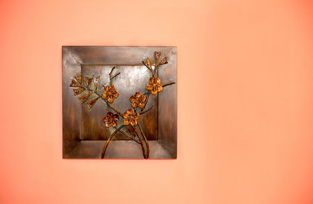 A beautiful shot of a grunge wall full of old colorful frames with vintage metal tools
