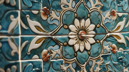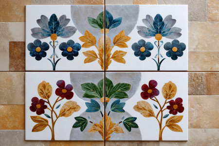 glazed decorative ceramic tiles with floral design, created with generative ai