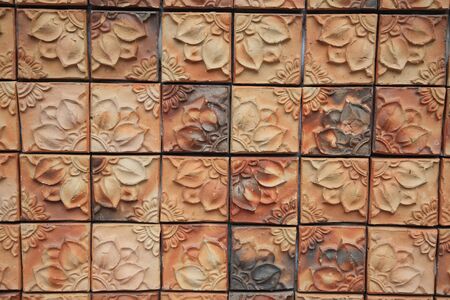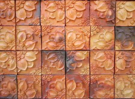 brown brick tile background, flower textured brick