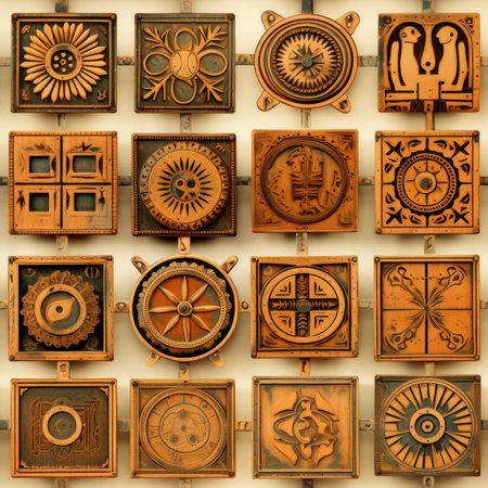 A captivating display of colorful decorative tiles featuring intricate designs, perfect for use in artistic projects or as a stunning backdrop for interior decor.