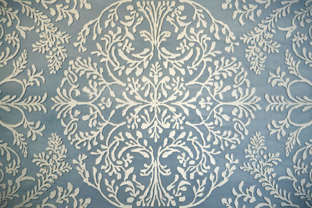 vintage floral pattern on a white wall, closeup of photo