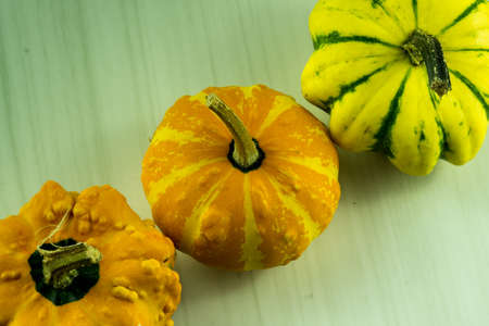 Fresh multicolored decorative pumpkins. Autumn colors, thanksgiving decorations.