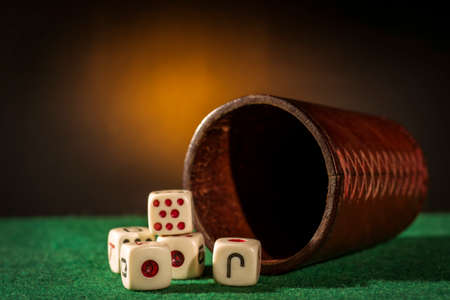 Dice Cup with Dices on Green