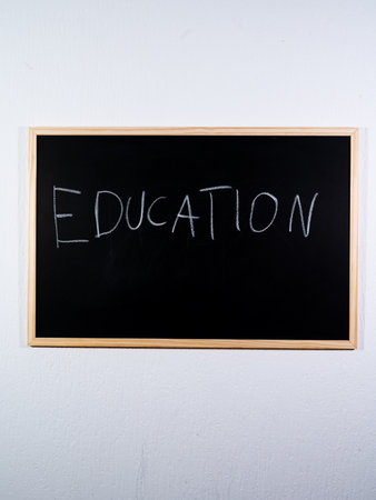 Chalkboard showing EDUCATION concept written vertically representing teaching, learning and academic development