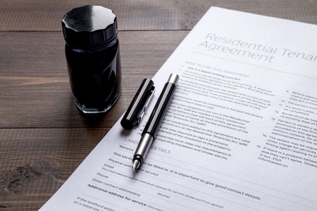 Pen on the CONTRACT AGREEMENT papers. Business concept