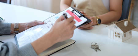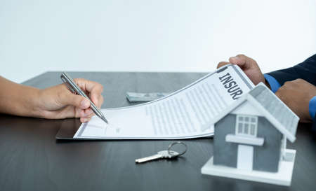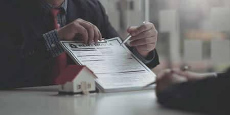 Real estate agents are drafting sales contracts for customers, drafting real estate sales contracts to be legal and fair to all parties. Real estate trading concept.