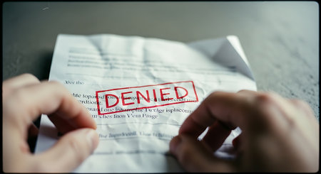 Man reading a document with the word DENIED on the table in the office