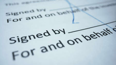 Detail of a man signing a paper Male finger showing where to sign