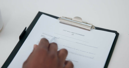 Notarys public pen and stamp on testament and last will.