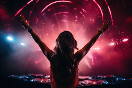 a female dj playing the music in the club bokeh style background