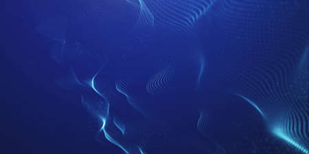 Creative abstract wave technology background with blue light digital effect particulars. 3d Render