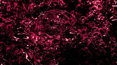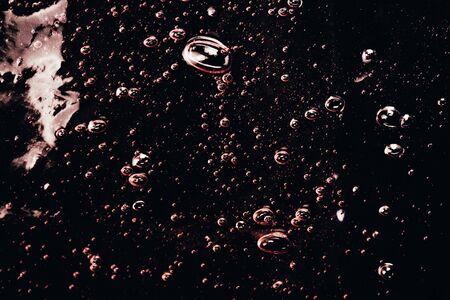 Red water background. Hair gel closeup backdrop. Abstract round bubble pattern. Fizzy liquid air drops texture. Spa therapy aromatic fluid.